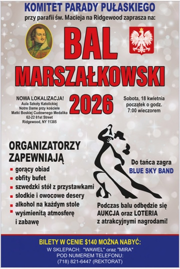 The 2024 Pulaski Parade Banquet will be held at the Venetian, 546 River Drive, Garfield, New Jersey, on Friday September 13, 2024.